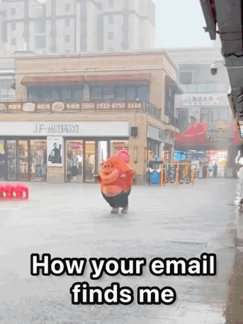 Pair the image with the phrase “how the email found me” or variations like “how your email finds me” or “where the email finds me.”